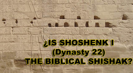 "The identification of the biblical Shishak with Shoshenk I of the 22nd Dynasty .. has been one of the major factors in determining Egypt's high chronology. This paper questions the validity of the identification and proposes that it should no longer stand an as obstacle to a radical revision of the chronology of the Third Intermediate Period." John J. Bimson - Shoshenk and Shishak, A Case of Mistaken Identity? (JACF 6 pg.19)